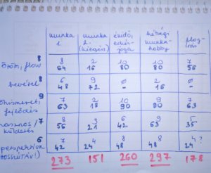 3. Sorold be 1-10 skálán, hogy az adott dolog mit ad Neked! (A golyóstollal írt számokat nézd a rublikákban fent, egyelőre.)